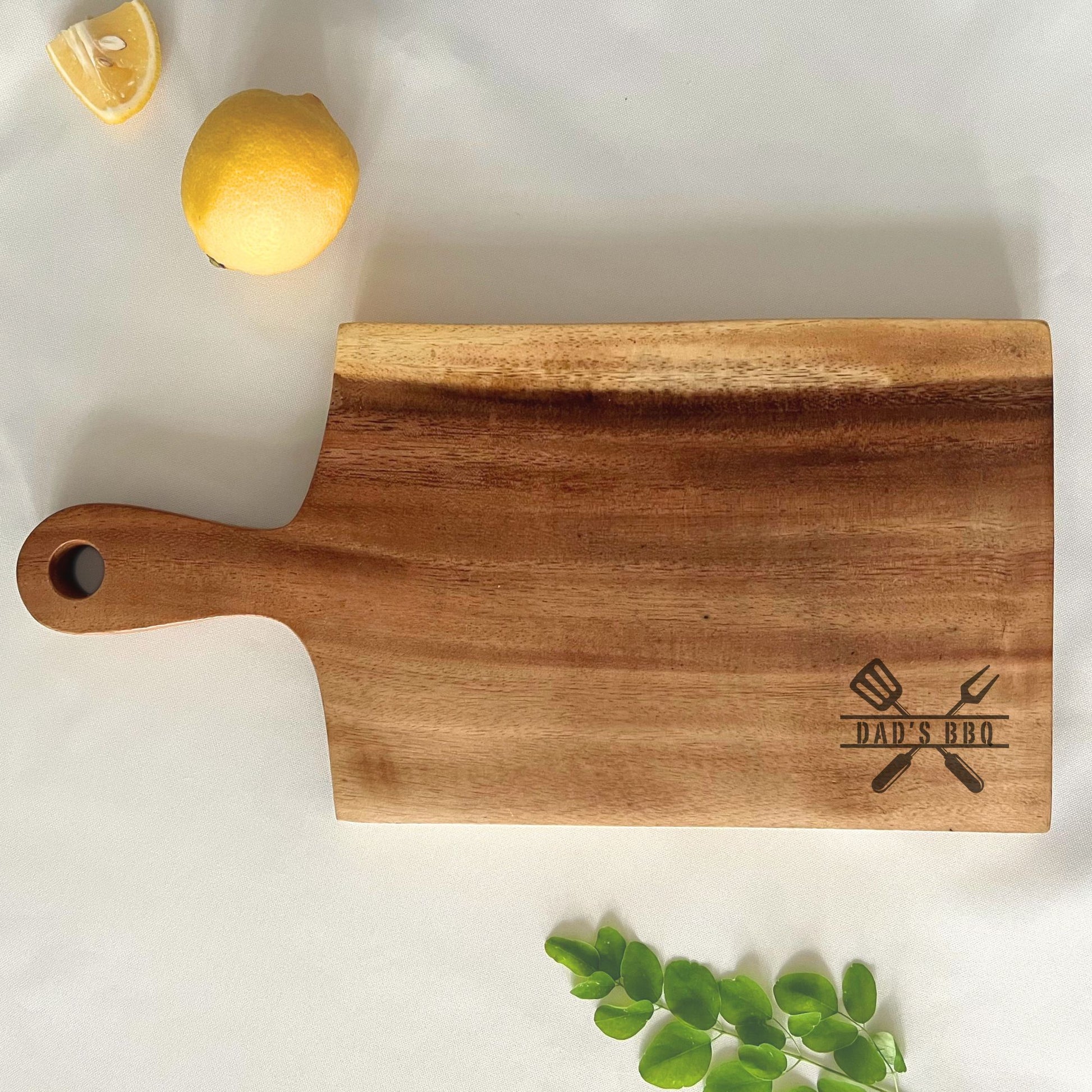 Crafted from richly grained Acacia in the Philippines, this serving board brings warmth to any table. Yours to personalize.